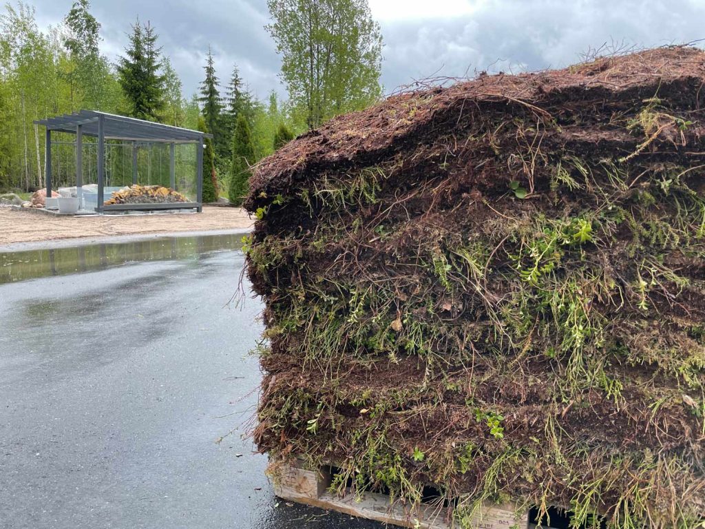 Meiltä onnistuu myös kuntan tuonti pihallesi ja voit halutessasi itse asentaa. Kuntta tuodaan tällöin eurolavalla, jossa on 18 kappaletta neliön paloja ja yksi pala painaa noin 20kg. Tämä järjestely mahdollistaa myös itse asentamisen, jos on valmis kokemaan fyysistä rasitusta. Annamme asentamiseen ohjeet ja tasaiselle pinnalle asentaminen on suhteellisen helppoa.