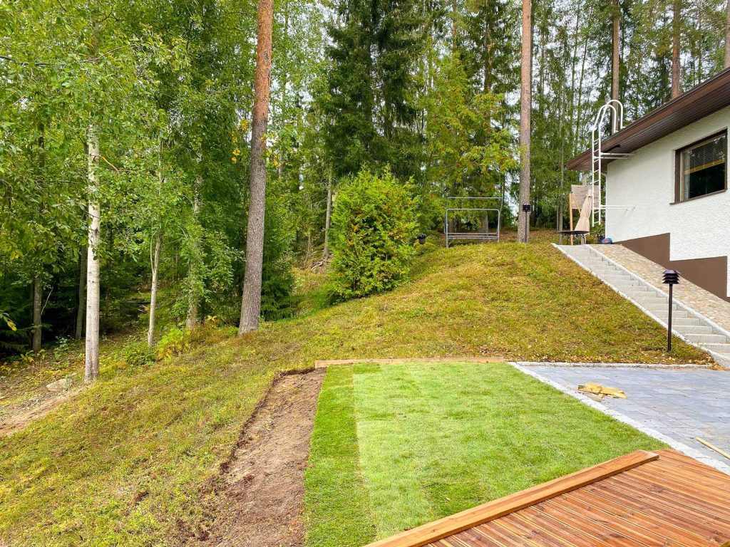 ”Rakensimme uutta taloa Sipooseen rinnetontille, ja etsimme pihalle ratkaisua, joka olisi sekä luonnollisen näköinen että helppohoitoinen. Tontti on melko jyrkkä, joten halusimme ratkaisun, joka ei vaadi jatkuvaa huoltoa tai koneellista leikkuuta. Päätimme tilata 700 neliötä kunttaa Päijän Kunnalta, ja täytyy sanoa – olen erittäin tyytyväinen!